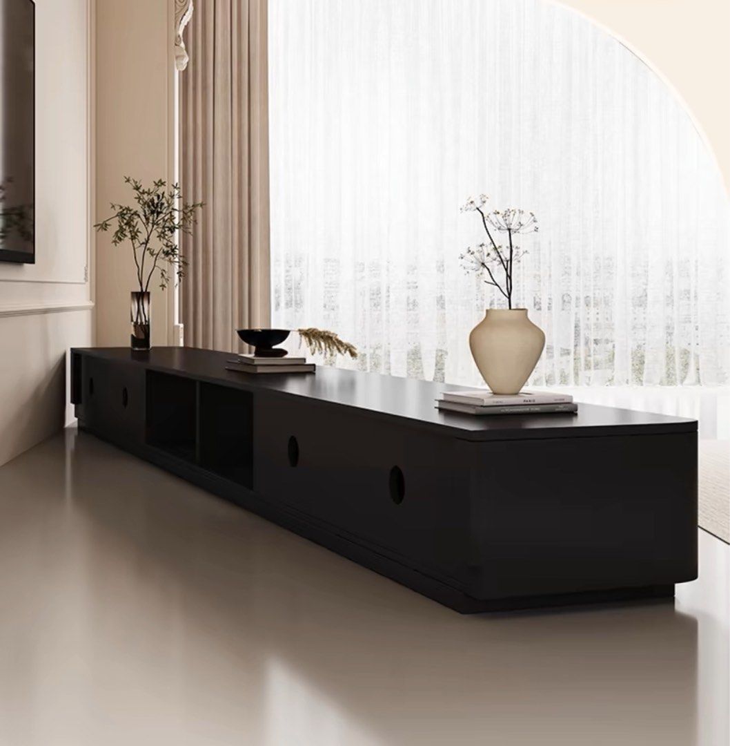 The KADEN Modern LED TV Console is a sophisticated and contemporary piece of furniture that seamlessly blends style and functionality, making it an ideal centerpiece for any modern living room. This console is characterized by its sleek, minimalist design, featuring clean lines and a high-gloss finish that exudes elegance.