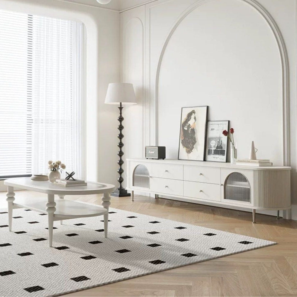 Drawing inspiration from both mid-century and Victorian aesthetics, the KATARN is an elegantly designed TV cabinet that seamlessly combines sleekness with ample storage and display options to meet your organizational requirements. Its smooth and matte surface serves as an ideal backdrop for showcasing vases, frames, and ornaments, while casement doors and drawers, enhanced with stainless steel hardware, offer discreet storage spaces for your media accessories and various items.