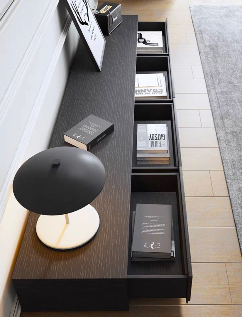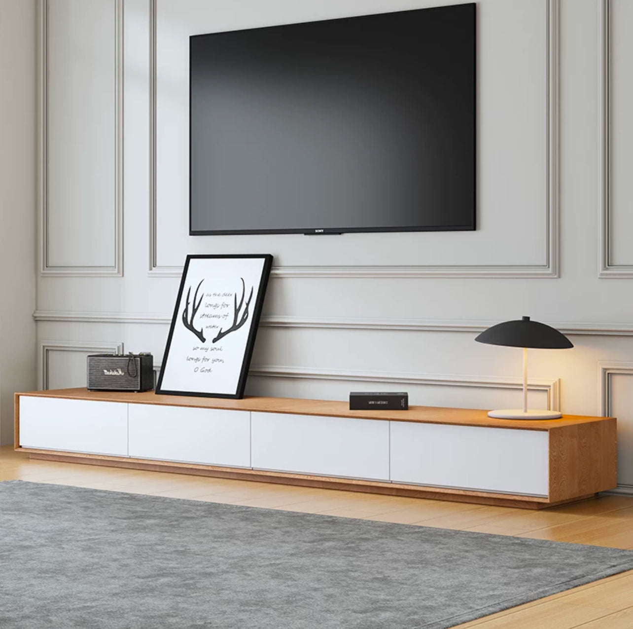 LORAIN Modern Solid Wood TV Console is a contemporary piece of furniture designed to hold and display your television and related equipment. It is characterized by sleek, clean lines and a minimalist aesthetic. This TV console is crafted from high-quality solid wood, which gives it a sturdy and durable construction.