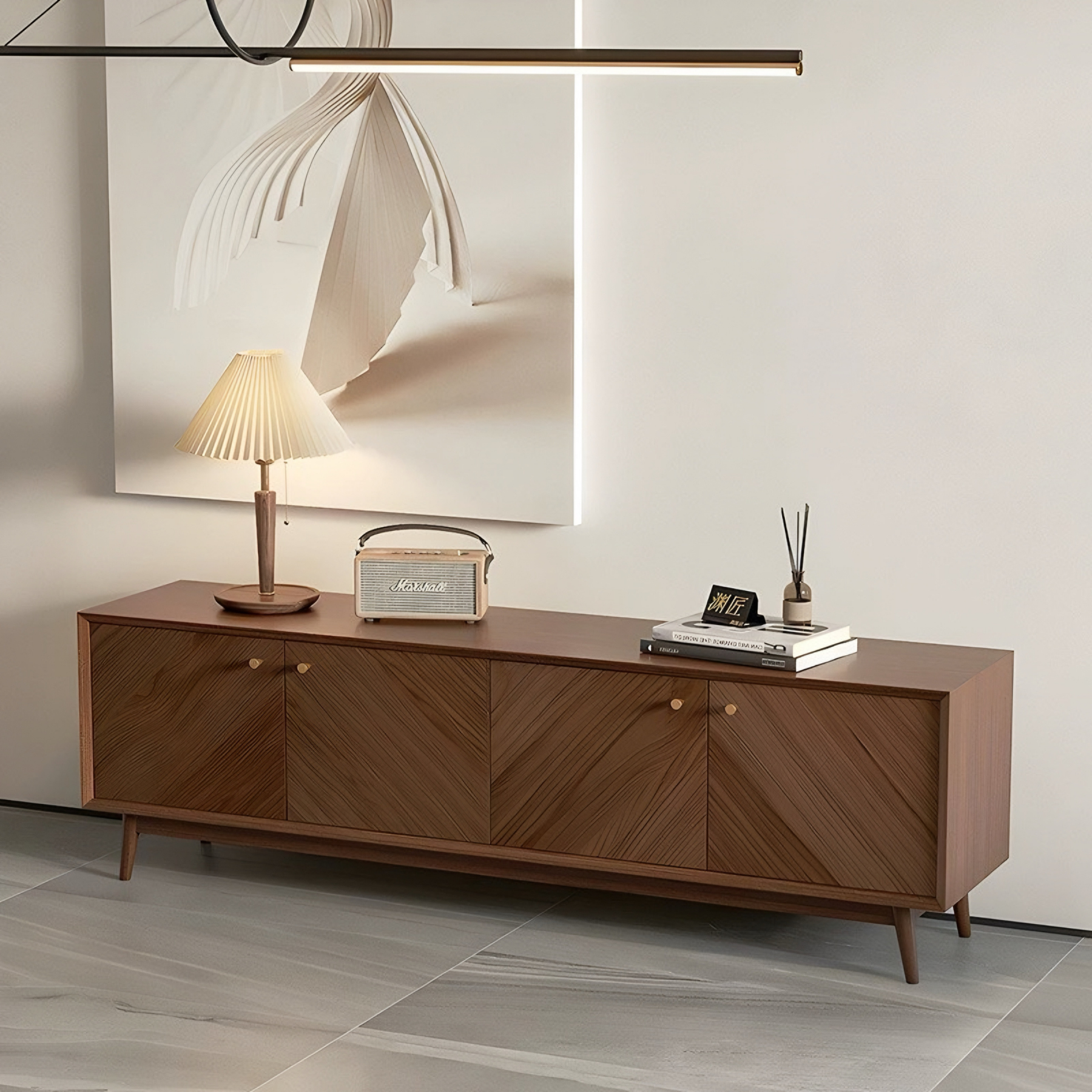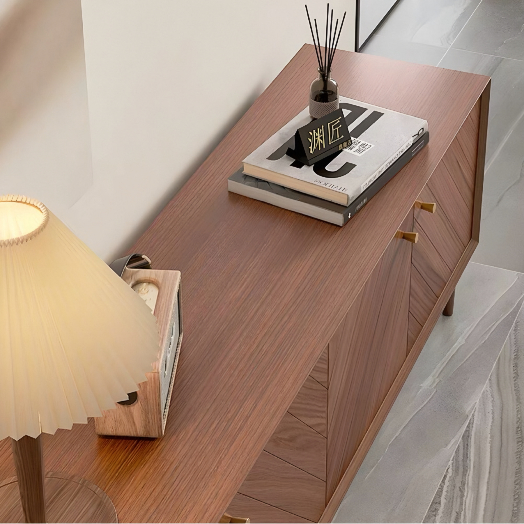 SHIMEL Modern Herringbone Tv Console is a stylish and functional piece crafted from high-quality pine wood, offering both durability and natural charm. Featuring a distinctive herringbone pattern across its front panels, this console adds a touch of contemporary elegance to any living space. The rich texture and grain of the pine wood bring warmth and character, while the sleek, minimalist frame ensures it complements modern interiors. Designed with ample storage, it includes spacious cabinets and open shelving—perfect for organizing media devices, accessories, and décor. Whether used as a TV stand or a statement furniture piece, this console table blends craftsmanship and design effortlessly.