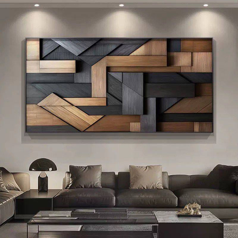 Add a touch of modern sophistication to your space with our unique MEYRE artwork crafted from metal panels in striking black and shades of brown. This edgy artwork makes a statement with its bold design and textured finish. Perfect for living rooms, bedrooms, or offices, strategic placement can create a focal point in any room. With its distinctive style and natural beauty, this artwork brings warmth and character to any contemporary home or office, making it a great conversation starter and a reflection of your personal taste.