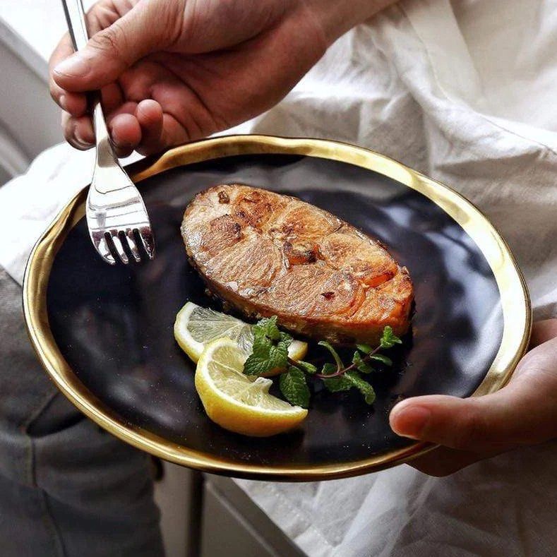Indulge in the ultimate dining experience with our Rudy Plate, a bold and audacious addition to any table setting. Made of the finest quality dark porcelain, this plate exudes an air of elegance and sophistication that is sure to impress. The gilded gold edges add a touch of royalty to the design, creating a regal ambiance that will make every meal feel like a special occasion. The rich and luxurious texture of the porcelain is matched by the plate’s stunning aesthetic, making it the perfect choice for those who appreciate both form and function. Whether you’re hosting a formal dinner party or enjoying a quiet meal with loved ones, the Rudy Plate is sure to elevate your dining experience to new heights. Its timeless and versatile design makes it perfect for any occasion, from intimate gatherings to grand celebrations. So why settle for ordinary dinnerware when you can have this exquisite plate that combines style, quality, and sophistication? Add the Rudy Plate to your collection today and enjoy the ultimate dining experience.