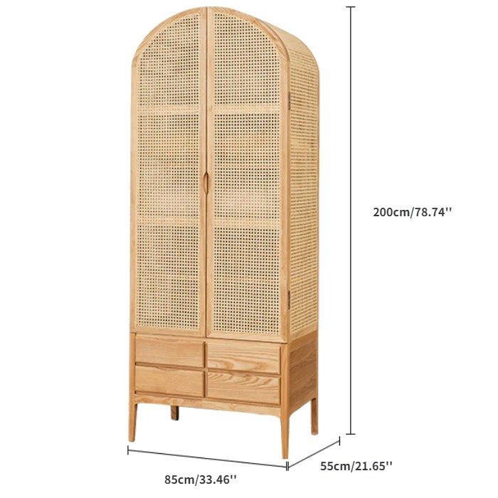 Introduce a touch of sophistication to your bedroom with this stunning wardrobe that boasts a classic double door design. Crafted from high-quality FAS grade ash wood, this wardrobe is not only sturdy and durable but also exudes an air of elegance with its light and refined appearance. The imported agate vine accents add a luxurious touch while ensuring that the wardrobe is environmentally friendly and safe to use. With five spacious shelves and four convenient drawers, this wardrobe offers ample storage space to keep your clothes and accessories organized and easily accessible. The grooved door handle ensures easy opening, while the solid wood tall feet keep the wardrobe stable and easy to clean, making it the perfect addition to any stylish and practical bedroom.