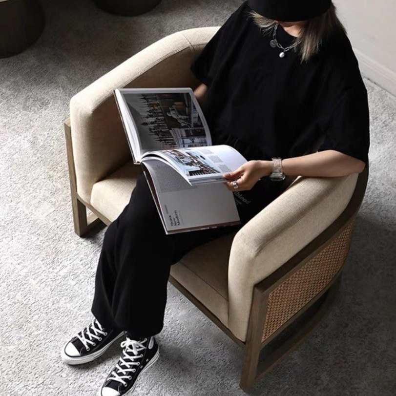 The SIMON Rustic Solid Wood Lounge Chair is a beautiful blend of rustic charm and modern comfort. Handcrafted from solid reclaimed wood, each chair features unique grain patterns and textures, ensuring that no two pieces are exactly alike. The chair’s design is characterized by its sturdy, angular frame and plush, upholstered seat and backrest, providing both support and comfort.