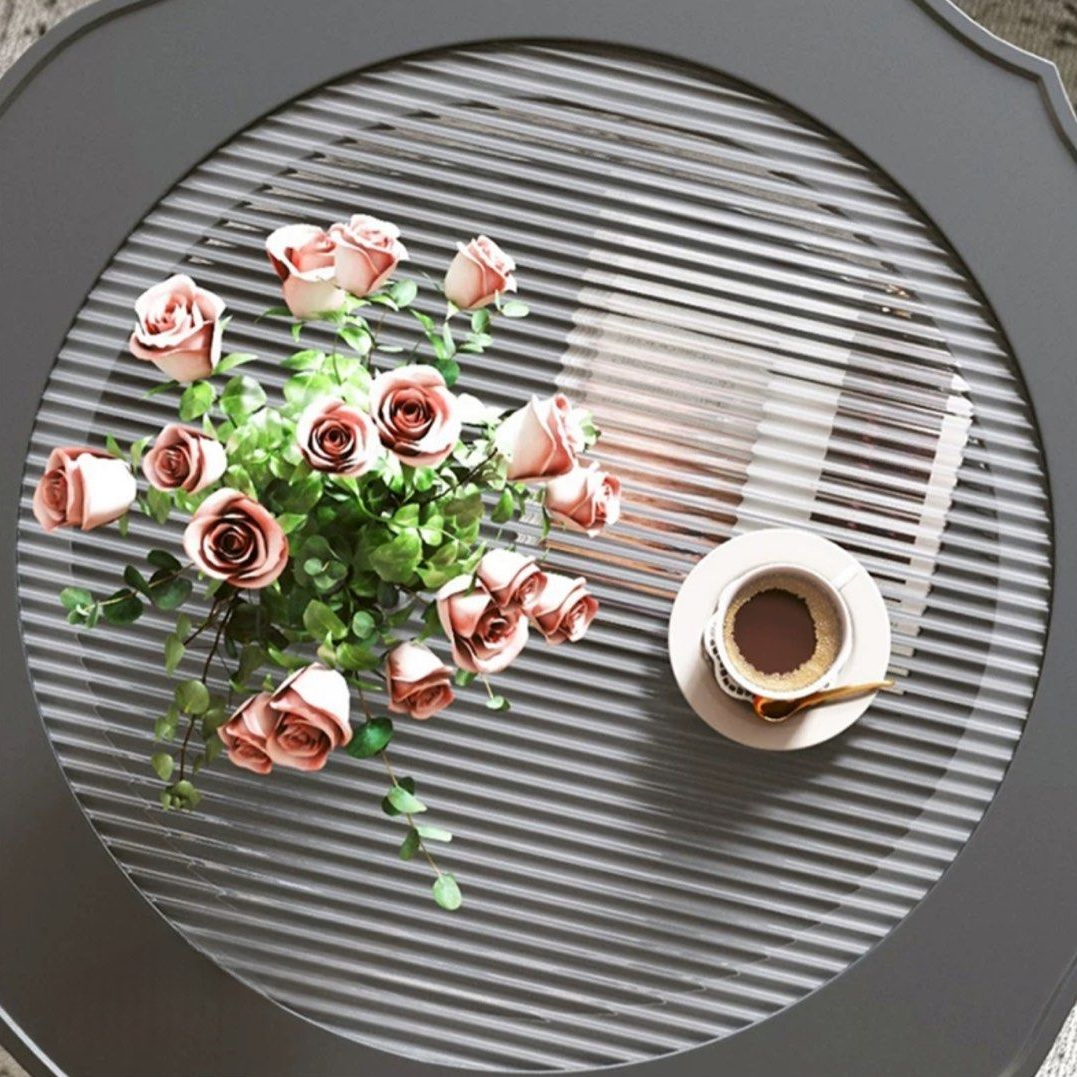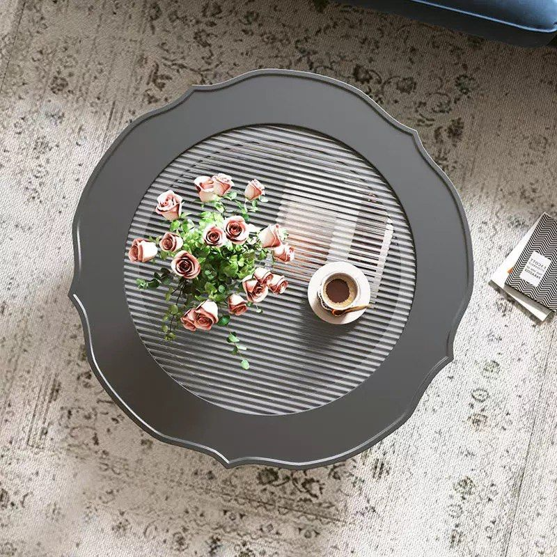 The BERG Vintage Solid Wood Round Coffee Table seamlessly blends classic charm with modern flair. Crafted from premium FAS grade ash wood, its rich, natural hues and intricate grain patterns provide a warm, inviting foundation. The round tabletop features ribbed glass, adding texture and depth while maintaining a sleek, polished look. The combination of wood and glass creates a striking visual contrast, with the glass surface subtly enhancing the table's vintage-inspired design. The BERG coffee table is a bold yet refined statement piece that effortlessly anchors any space, exuding timeless appeal with a contemporary twist.