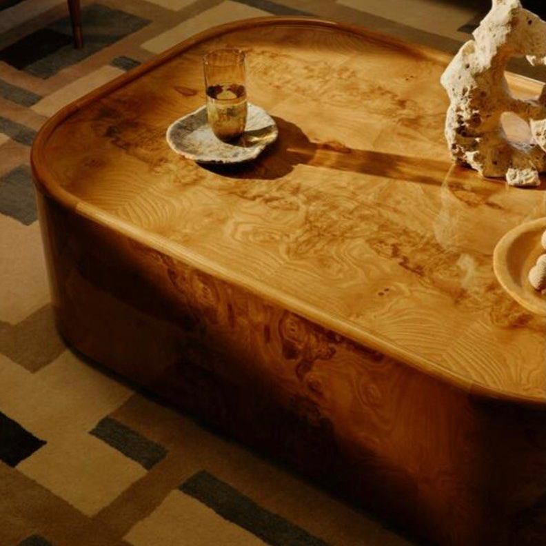 The YAN Modern Mappa Burl Coffee Table is a masterful fusion of natural beauty and modern craftsmanship. Its striking mappa burl veneer top, with its intricate, swirling patterns, captures the eye with a rich, textured surface that exudes sophistication. Supported by a sturdy foundation of ash wood, MDF, and plywood, the table balances warmth and durability. The olive ash burl veneer adds an earthy elegance, transforming the table into a statement piece that draws attention while maintaining a timeless appeal. This coffee table seamlessly blends organic charm with contemporary design, making it an ideal centerpiece for a refined living space.