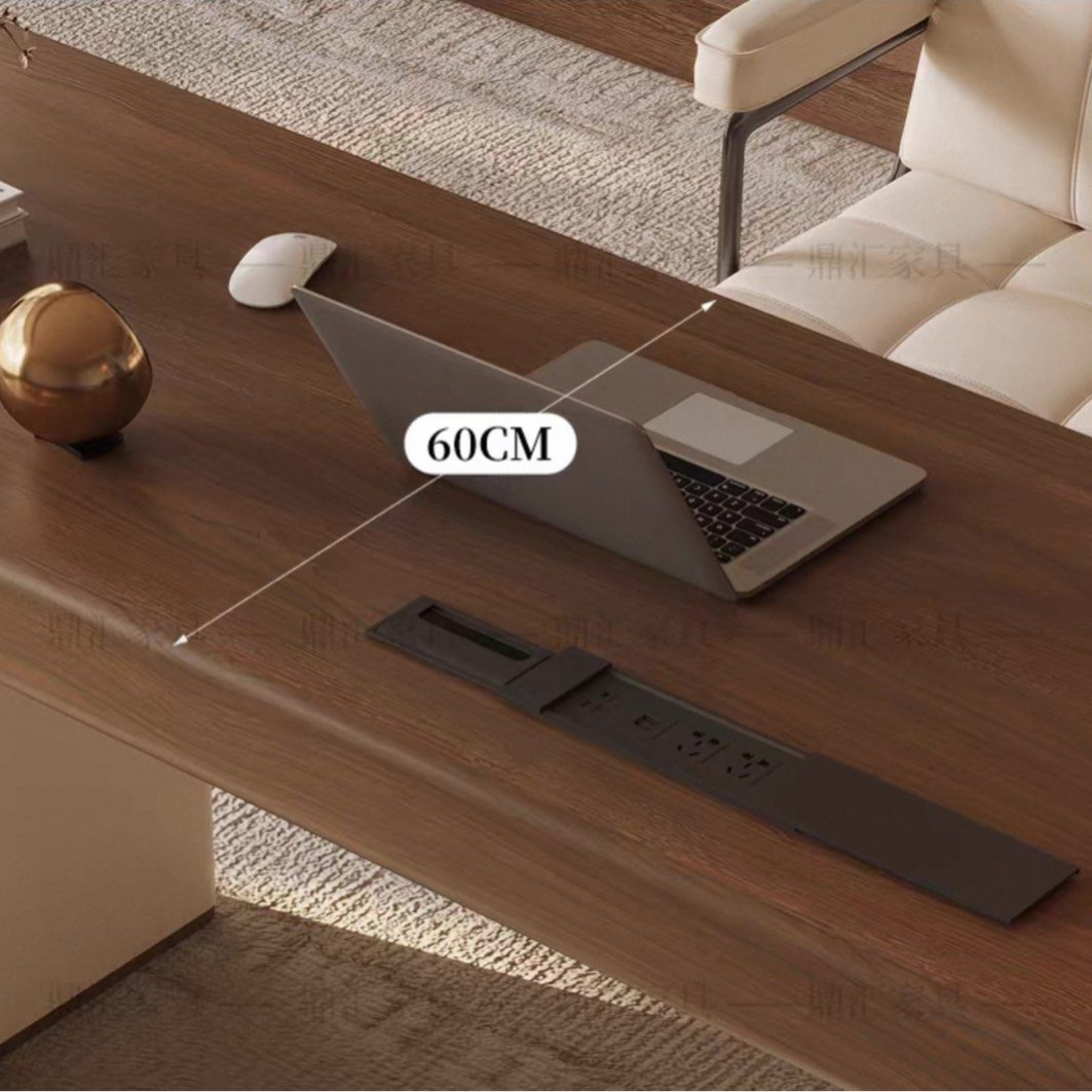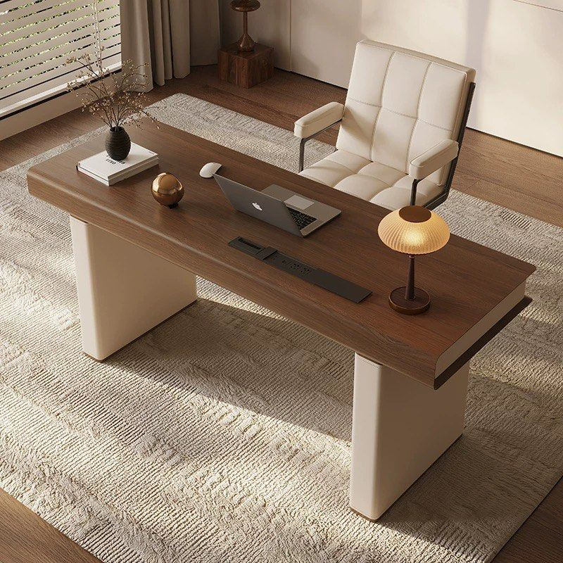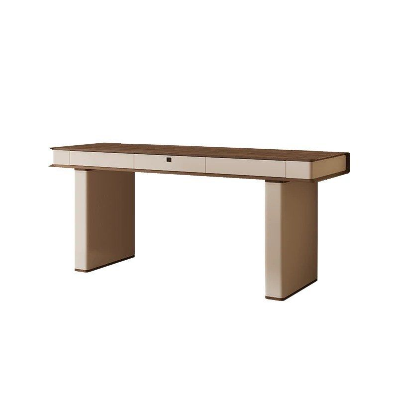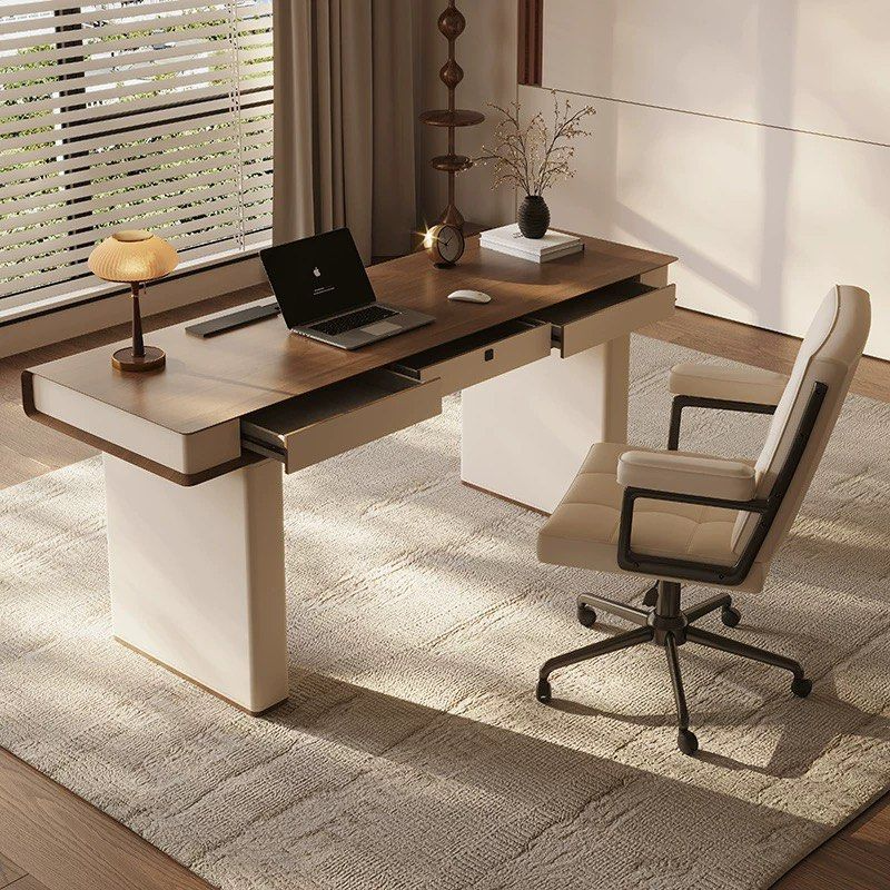 The BERRYE Modern Solid Wood Study Table is a stylish and functional desk crafted from solid oak wood and features saddle leather accents. It includes three drawers, one of which has a convenient thumbprint function for secure access. The combination of durable oak construction and premium leather detailing gives it a sophisticated, modern aesthetic while offering practical storage solutions. Ideal for home or office use, this desk blends elegance with innovative security features.