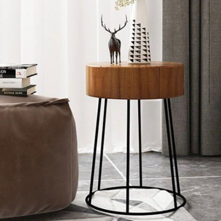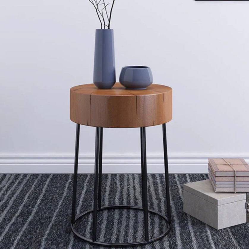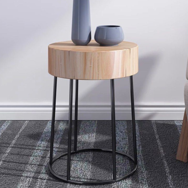 Bring a touch of Nordic simplicity to your bedroom or living room with this elegant end table. The round tabletop, made from rustic pine wood, provides ample space for your belongings. Its cylindrical base ensures stability and adds a touch of style to the piece. The weathered finish of the table gives it a natural look that complements a variety of decoration styles. Note that slight geometric differences may occur due to the nature of the materials used.
