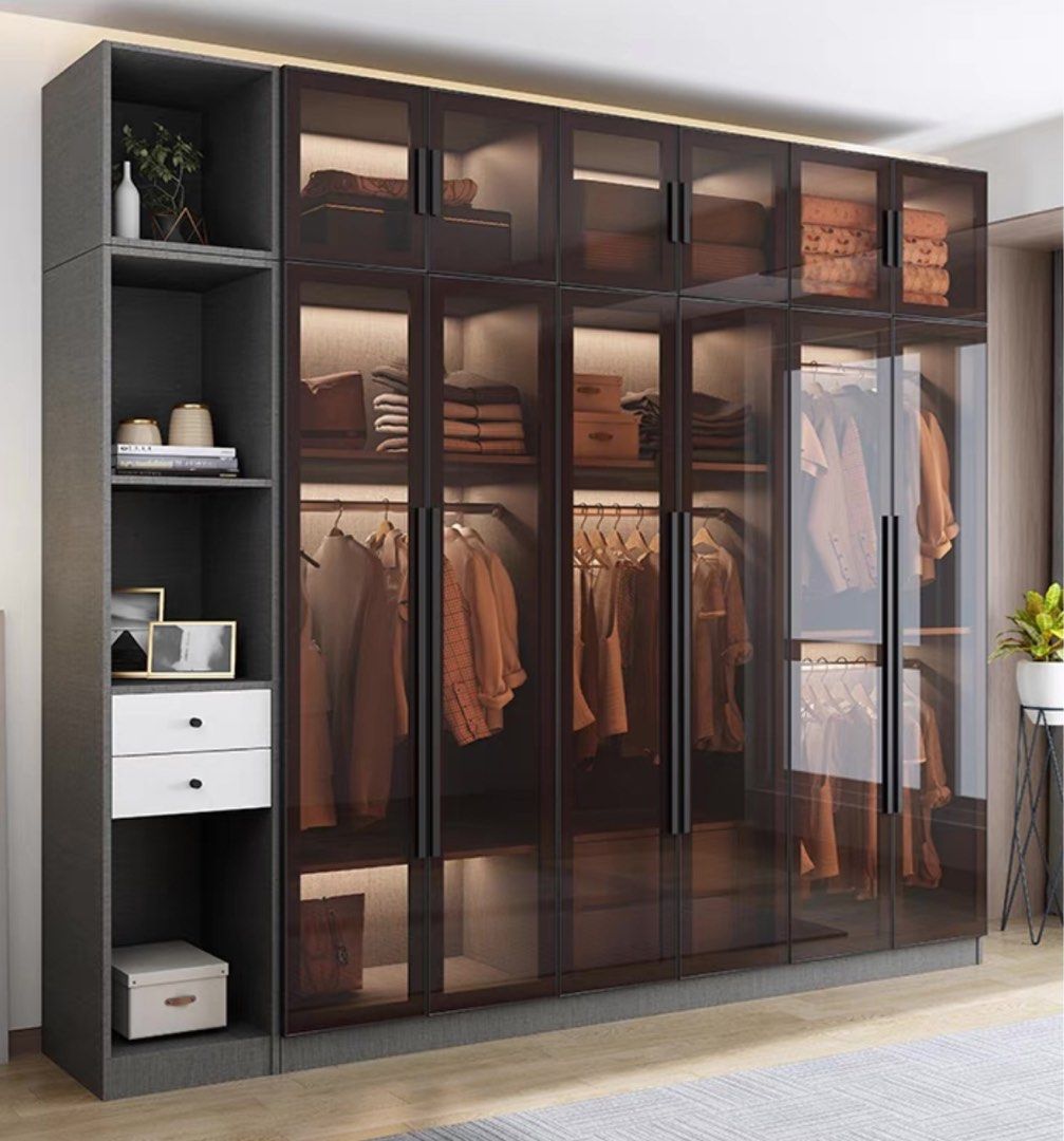 The FARRON Wardrobe is an extraordinary fusion of transparency and structure, where sleek 3C tempered glass meets the rich, natural tones of solid ash wood with a multilayer board core. The sophisticated glass panels provide a glimpse into the organized space within, offering an elegant display while ensuring your belongings are kept secure. The wardrobe's minimalist frame is designed to stand out with clean, sharp edges and smooth wood detailing. With ample space for both hanging and folded items, the FARRON brings contemporary style and practical storage to your home, making it an ideal choice for those who appreciate both form and function.