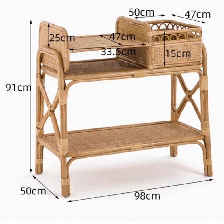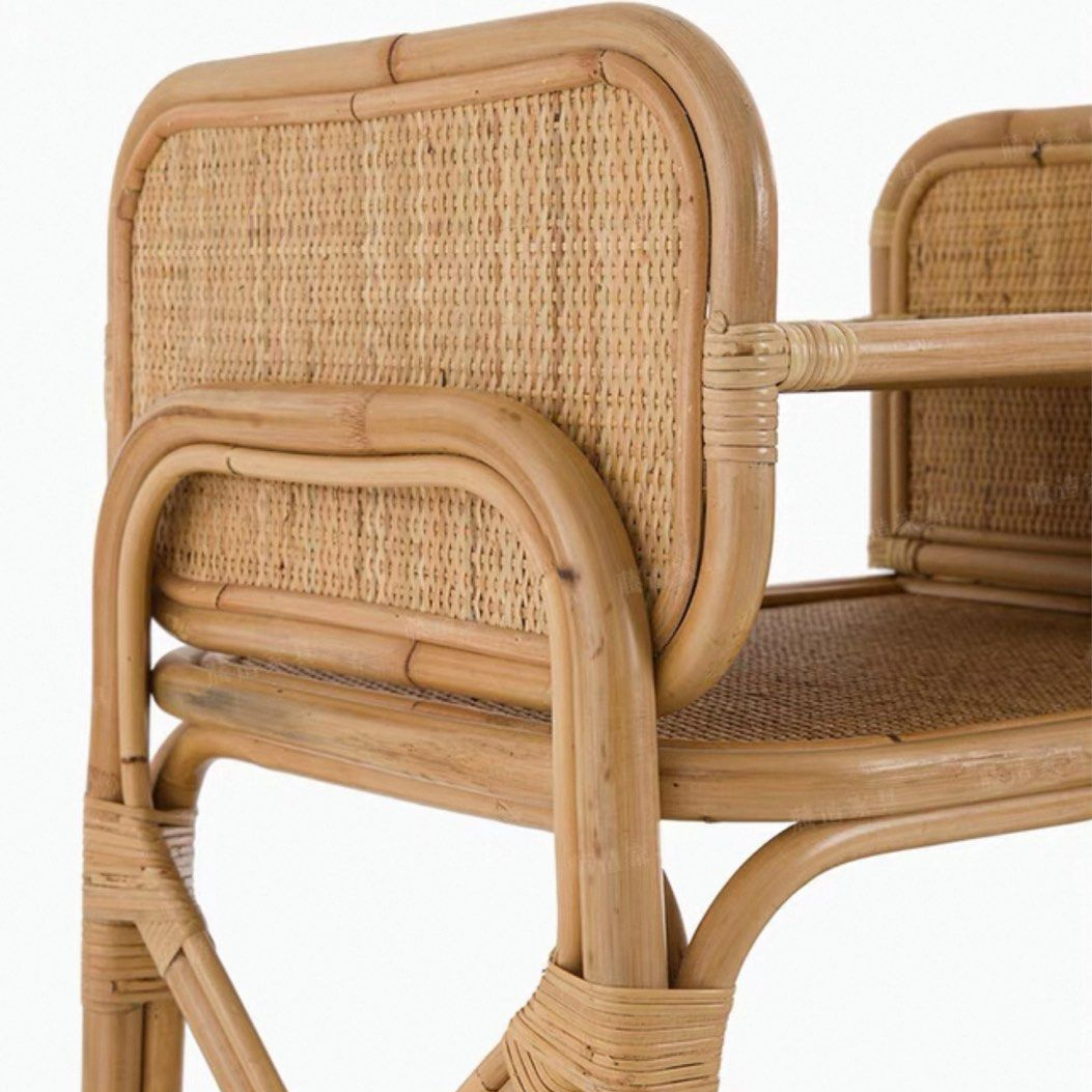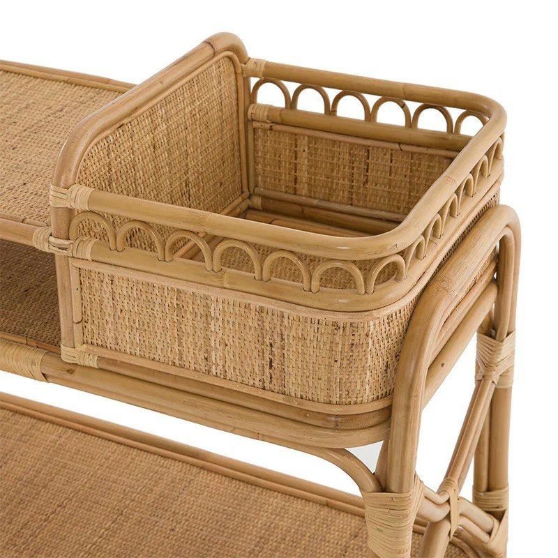 A combination of natural texture and rustic design form the foundation of our FREVY bar shelf. Crafted with Indonesian rattan, this shelving unit adds warmth and an organic allure to any dining room or pantry. Its detailed craftsmanship make it an ideal storage solution for wine bottles, magazines, and more.