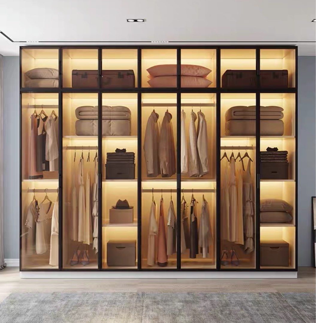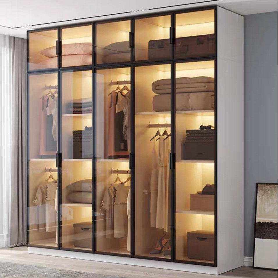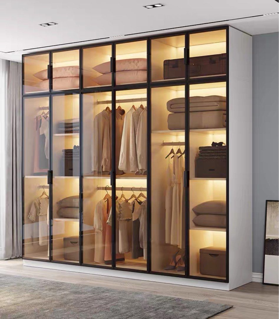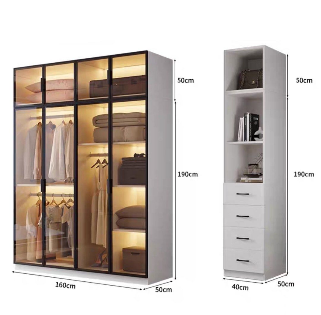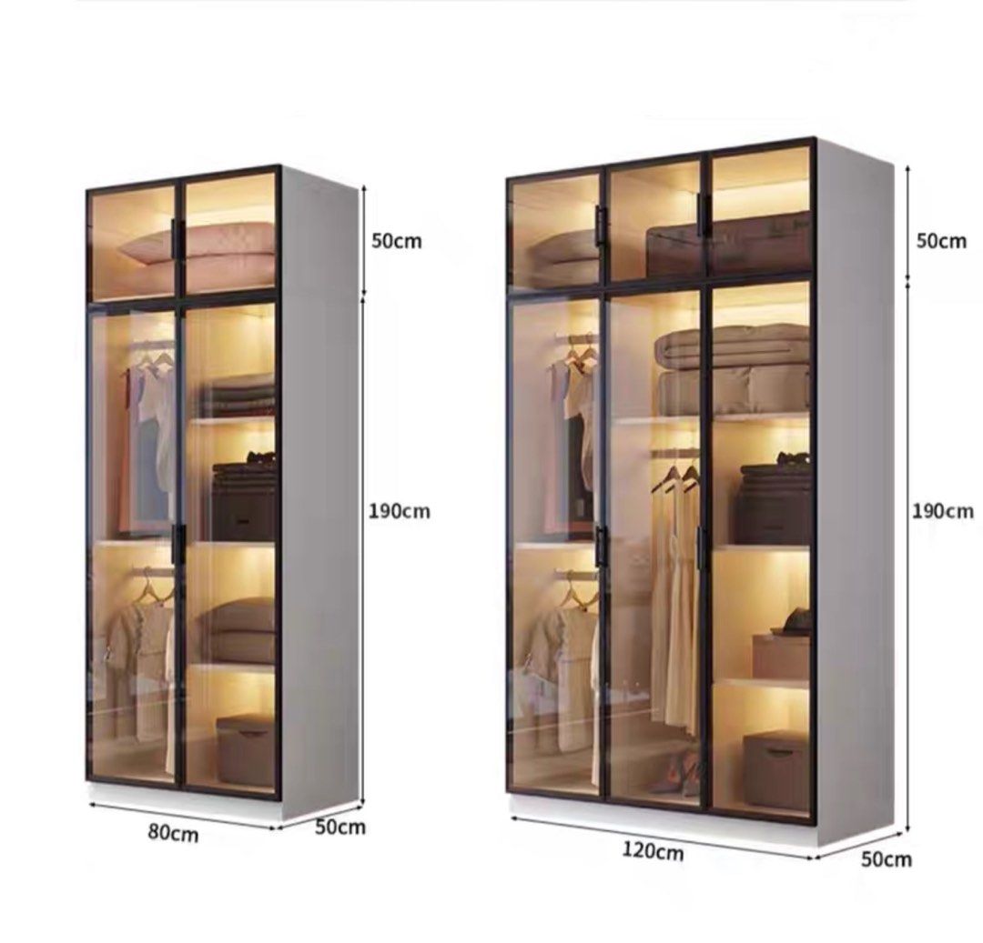 Elevate your bedroom with our sleek and modern GEREZ wardrobe featuring glass doors. The minimalist design and transparent glass create a sense of openness and sophistication, perfect for contemporary spaces. The sturdy frame and high-quality glass ensure durability and ease of use, while the spacious interior and adjustable shelves provide ample storage for your clothing and accessories. Add a touch of elegance to your bedroom with our glass door wardrobe, ideal for those seeking a stylish and functional storage solution.