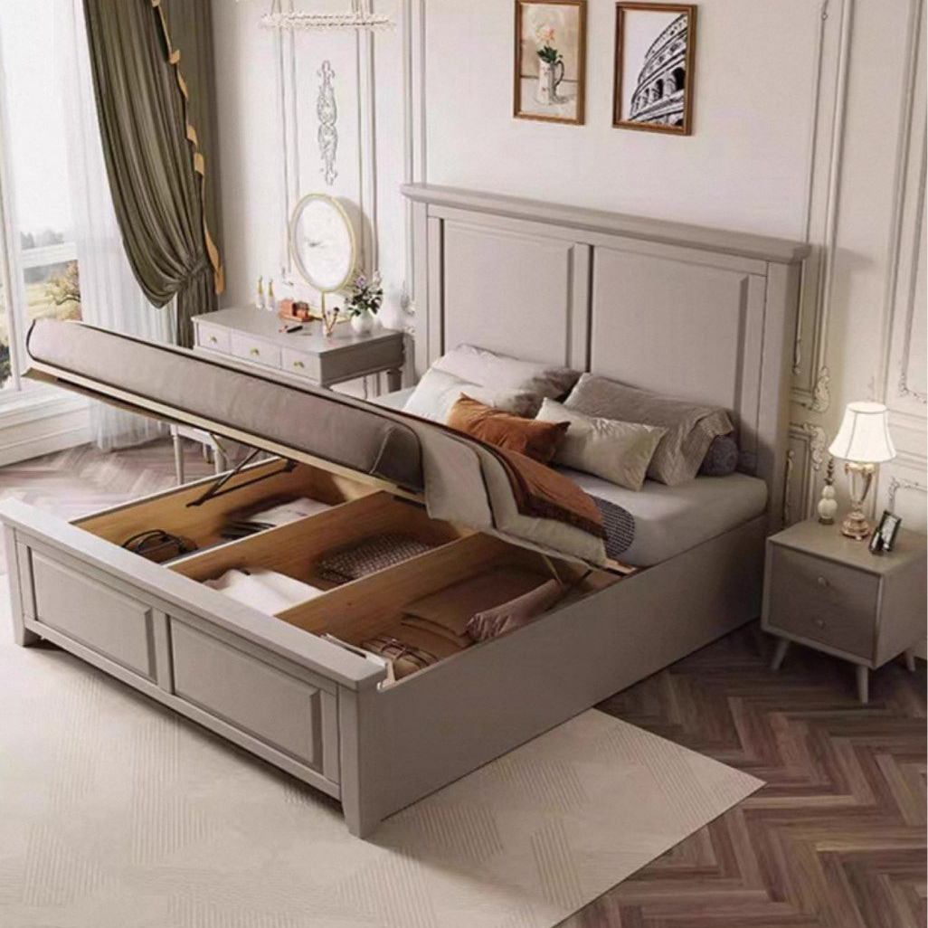 A Classic American bedframe that is expertly crafted from pine wood and finished in a sophisticated grey tone, our KISALE bed features a tall backrest that adds a touch of luxury and refinement, making it a statement piece in any bedroom. Choose from two convenient storage options: a hydraulics storage base or drawers, perfect for keeping linens, out-of-season clothes, or personal treasures organized and out of sight. This bedframe’s classic design and premium materials ensure it will remain a beloved fixture in your home for years to come. Its traditional charm and modern functionality make it an ideal choice for those seeking a comfortable and stylish retreat.