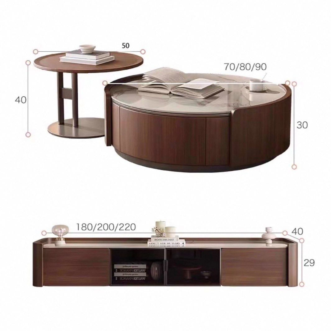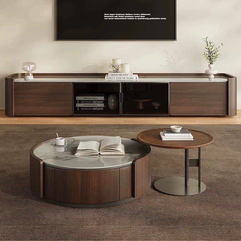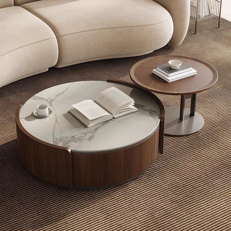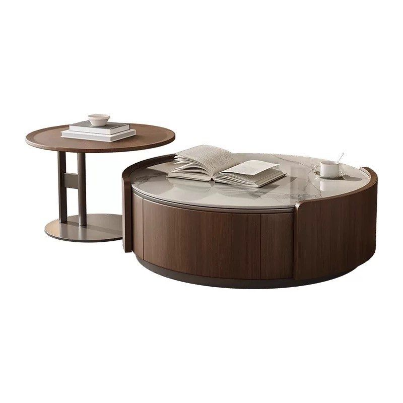 The TROEJ Modern Round Coffee Table blends natural warmth with contemporary sophistication, crafted from premium solid wood and sleek sintered stone. The harmonious contrast of rich wood grain and smooth, durable stone creates a striking yet balanced aesthetic, perfect for modern living spaces.