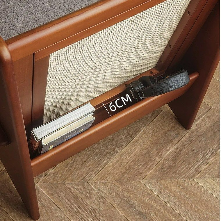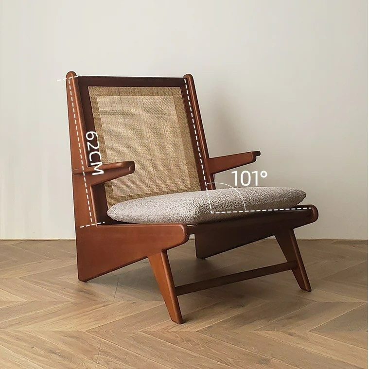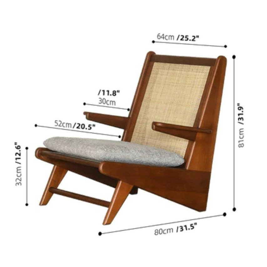 Elevate the look of your living room or bedroom with this mid-century modern armchair. Crafted from premium-quality North American toon wood and organic Indonesian rattan, this armchair exudes style and luxury. The lambswool foam seat and armrests provide excellent support and comfort, while the wooden square arms and upholstered backrest create a sleek and streamlined look that complements modern and contemporary decor. Moreover, the backrest of this armchair has a storage function, making it a practical addition to your living space.